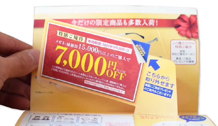 顧客の来店率2.5倍! 開くと飛び出す割引券付DMで購入金額アップ