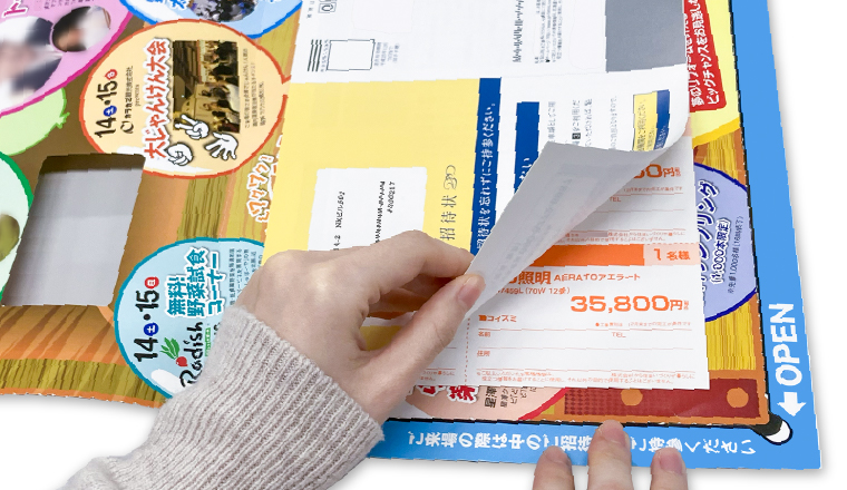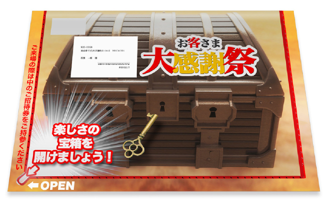 「招待状」は、宛名印字台紙を兼ねているため、来場した顧客のデータ管理が簡単になり、効率的な顧客管理が実現しました。この仕組みは、広告主様にとって非常に評価され、集客と管理の両面で高い効果を発揮しました。
